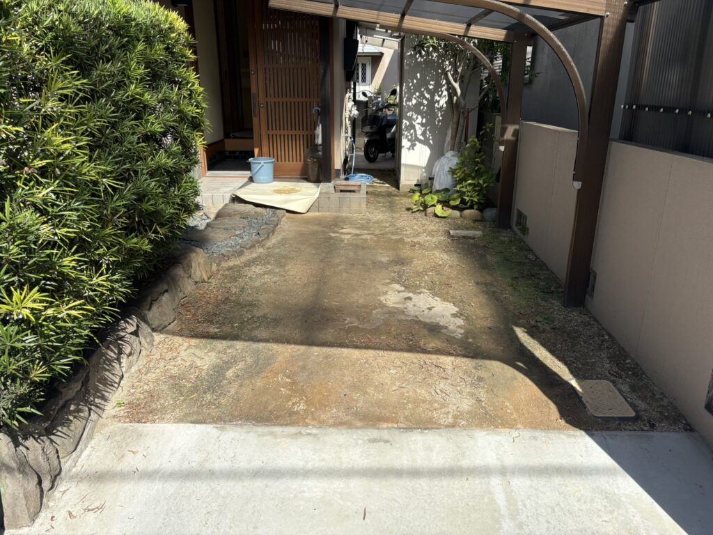 S様のお悩みは、カーポート下の土間が「土のまま」になっていることでした。